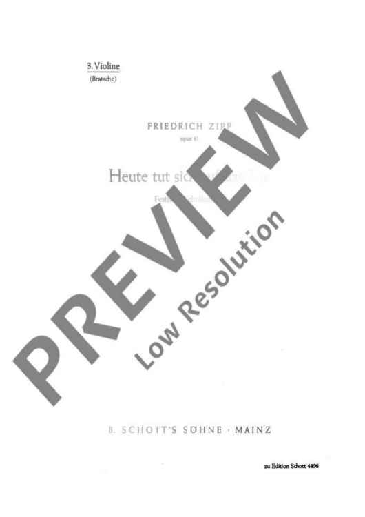 "Heute tut sich auf das Tor - Violin Iii" Sheet Music by Friedrich Zipp