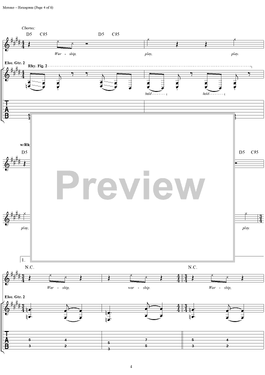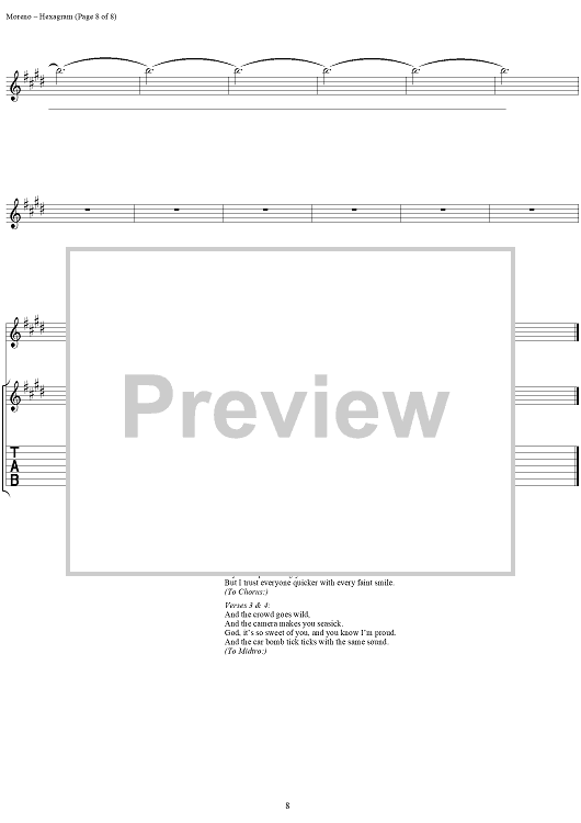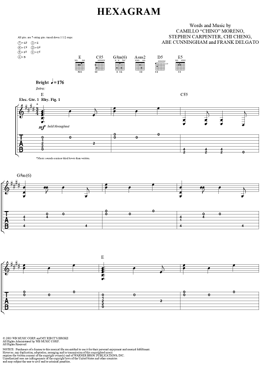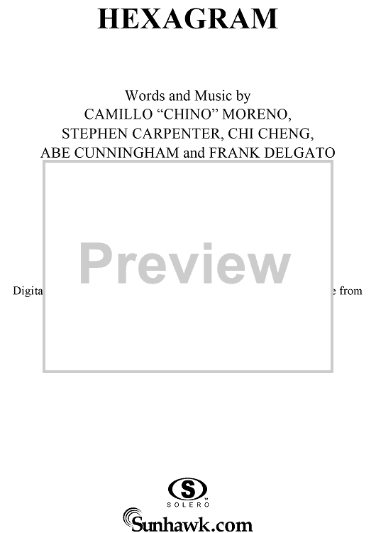 Digital Sheet Music for Hexagram by Deftones, Chino Moreno, Chi Cheng, Abe Cunningham, Frank Delgato scored for Guitar Tab/Vocal; id:303021