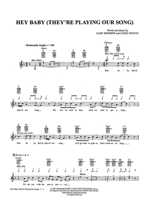 Digital Sheet Music for Hey Baby (They're Playing Our Song) by Gary Beisbier, James Holvay, The Buckinghams scored for Easy Guitar Tab/Vocal/Chords; id:457211