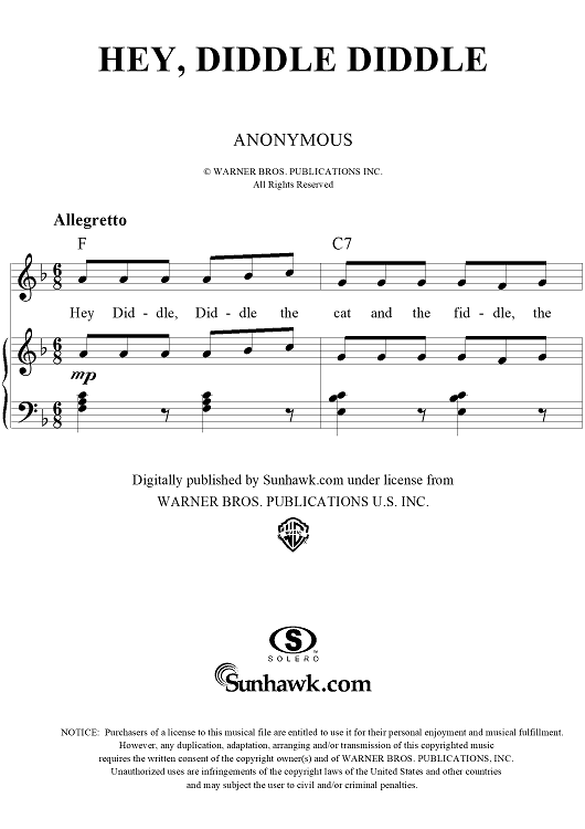 "Hey, Diddle Diddle" Sheet Music by Unknown Writer