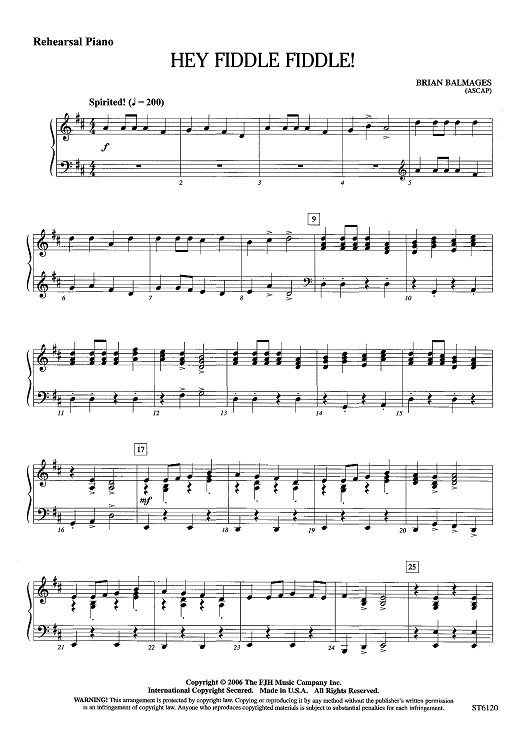 "Hey Fiddle Fiddle! - Rehearsal Piano" Sheet Music by Brian Balmages