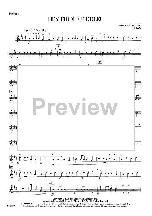 Digital Sheet Music for Hey Fiddle Fiddle! - Violin 1 by Brian Balmages scored for String Orchestra; id:441037