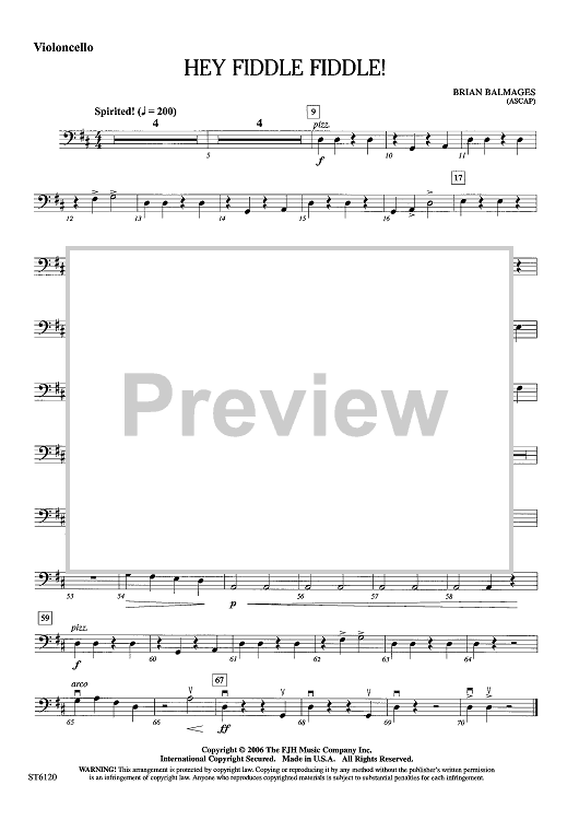 Digital Sheet Music for Hey Fiddle Fiddle! - Violoncello by Brian Balmages scored for String Orchestra; id:441041