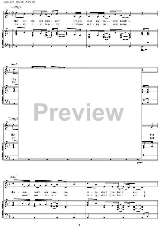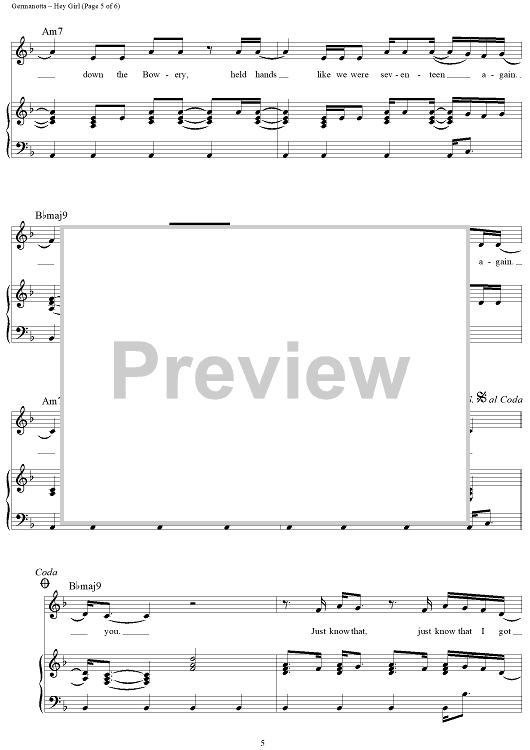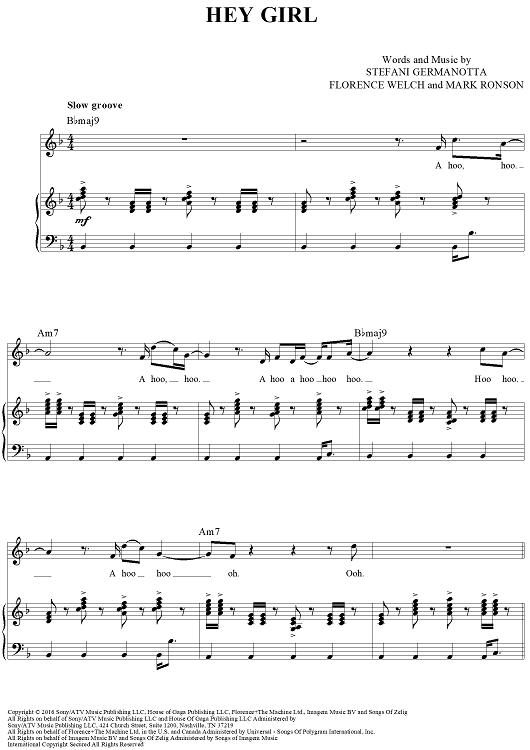 Digital Sheet Music for Hey Girl by Mark Ronson, Stefani Germanotta, Lady Gaga, Florence Welch scored for Piano/Vocal/Chords; id:464813