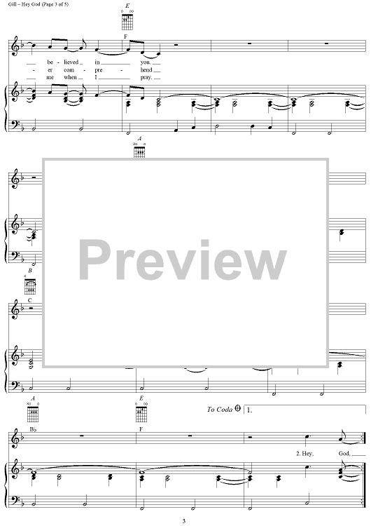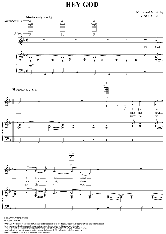 Digital Sheet Music for Hey God by Vince Gill scored for Piano/Vocal/Chords; id:241331