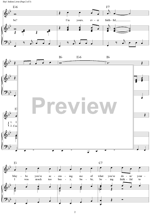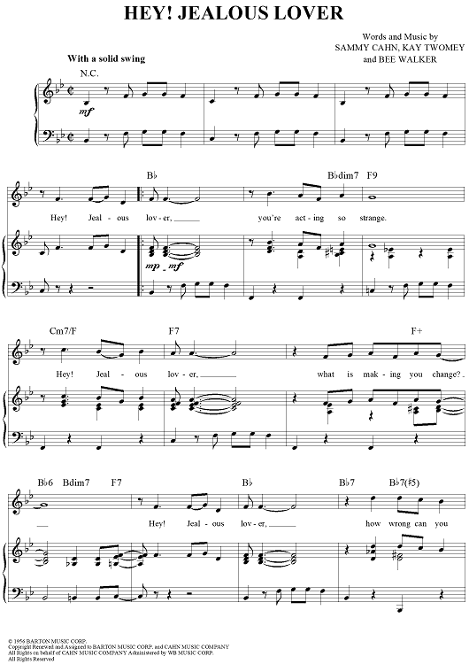 Digital Sheet Music for Hey! Jealous Lover by Frank Sinatra, Sammy Cahn, Kay Twomey, Bee Walker scored for Piano/Vocal/Chords; id:111828