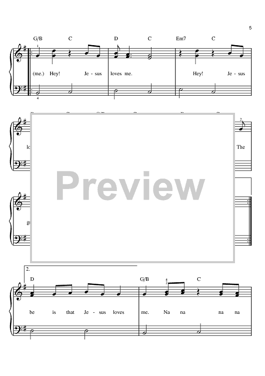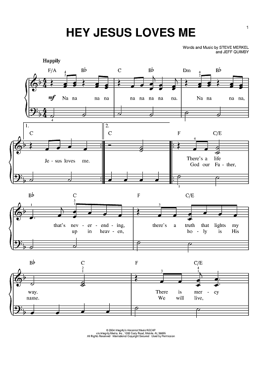 Digital Sheet Music for Hey Jesus Loves Me by Steve Merkel, Jeff Quimby scored for Easy Piano; id:402351