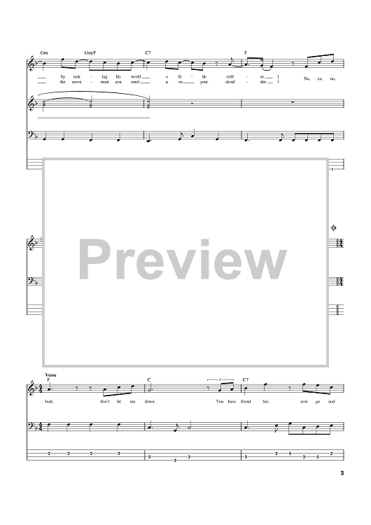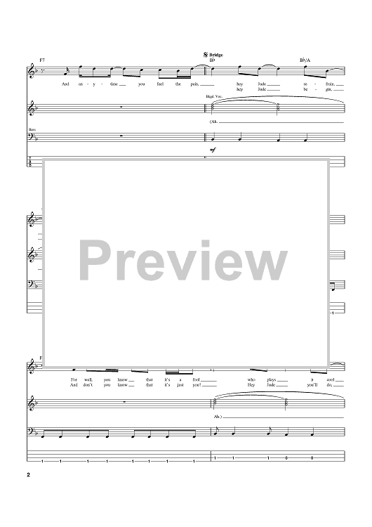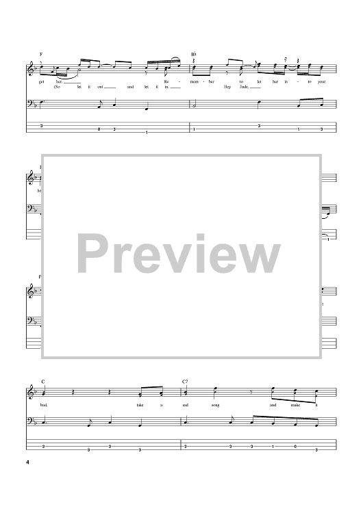 Digital Sheet Music for Hey Jude by Paul McCartney, The Beatles, John Lennon scored for Bass Tab; id:369522
