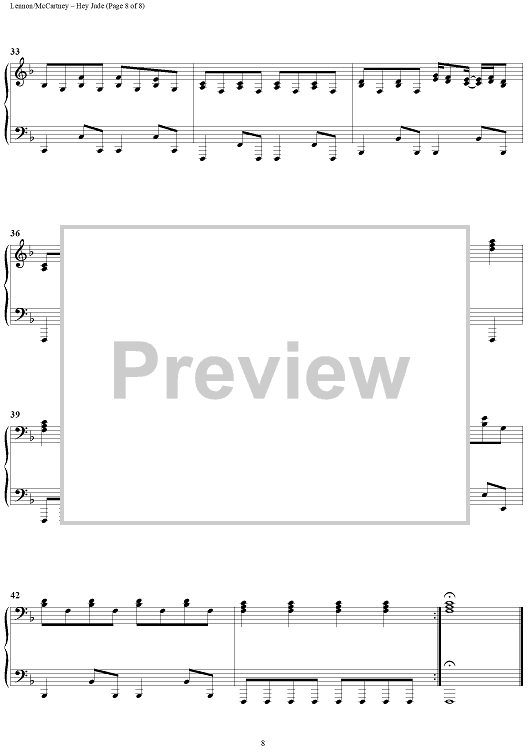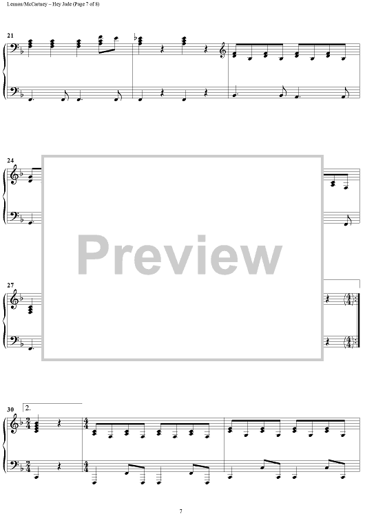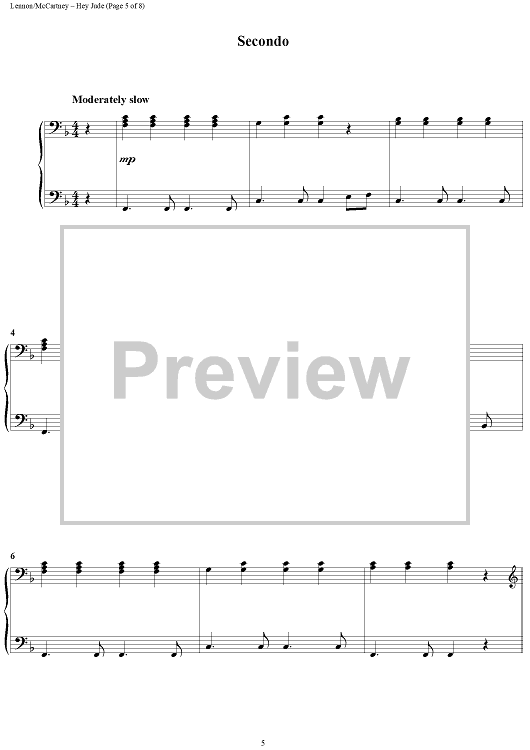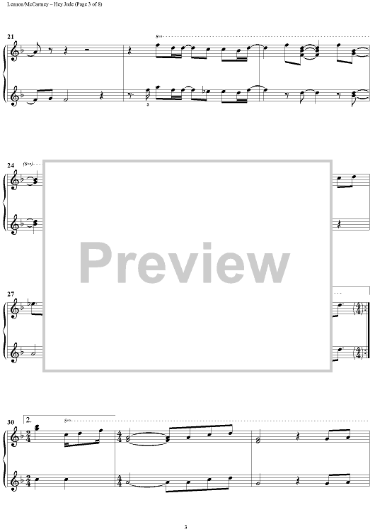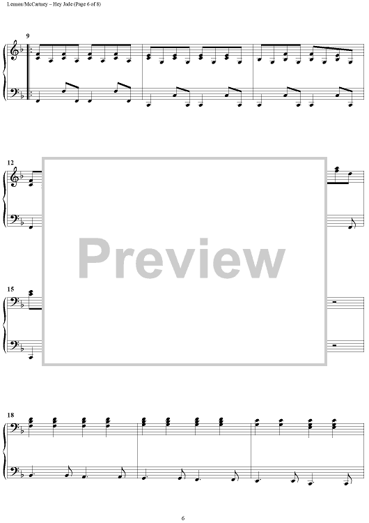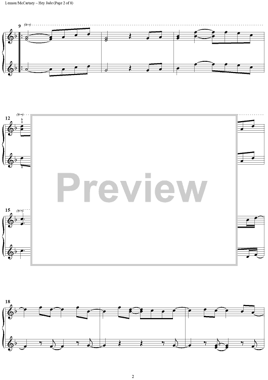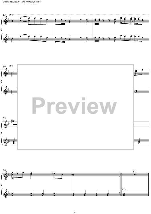 Digital Sheet Music for Hey Jude by Paul McCartney, The Beatles, John Lennon scored for 1 Piano, 4 Hands; id:396596