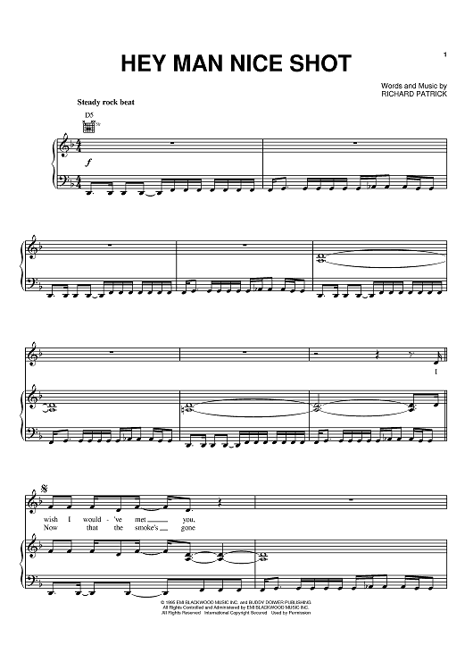 Digital Sheet Music for Hey Man Nice Shot by Filter, Richard Patrick scored for Piano/Vocal/Chords; id:368453