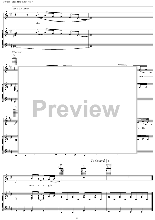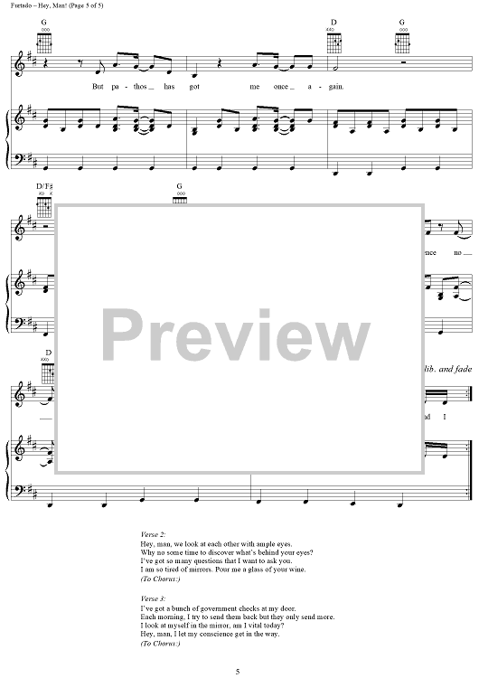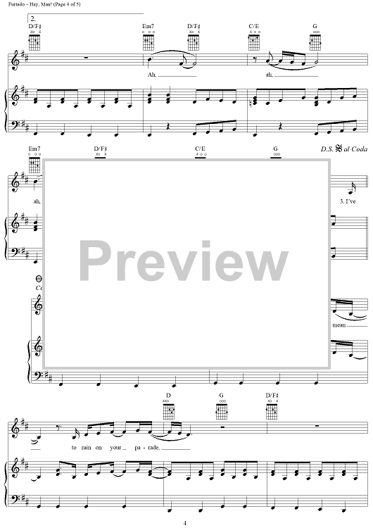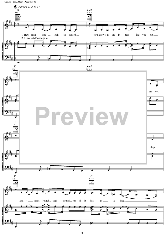 Digital Sheet Music for Hey, Man! by Nelly Furtado, Gerald Eaton, Brian West, Kevin Volans scored for Piano/Vocal/Chords; id:286601