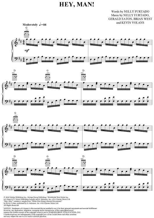 "Hey, Man!" Sheet Music by Nelly Furtado
