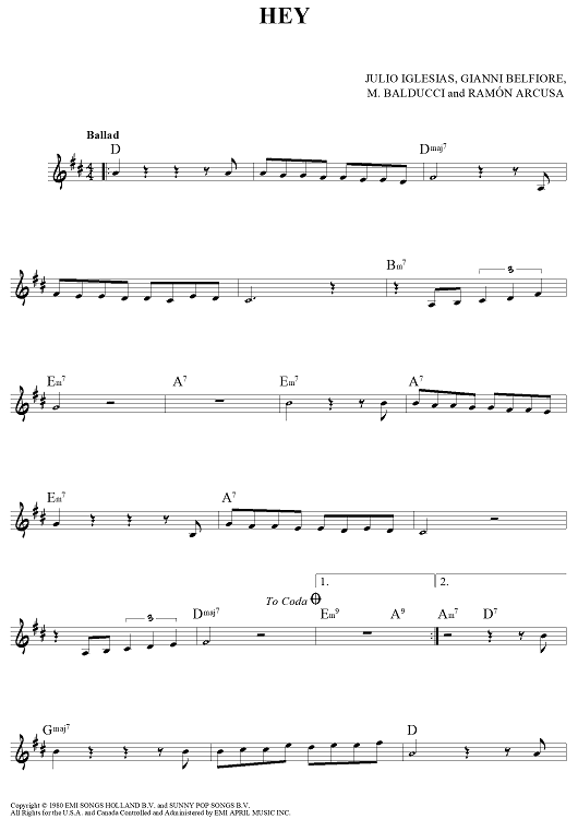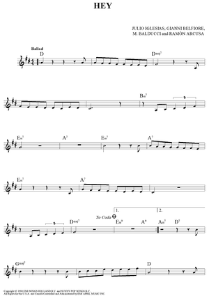 Digital Sheet Music for Hey by Julio Iglesias, Ramon Arcusa, Gianni Belfiore, M. Balducci scored for Lead Sheet; id:448987