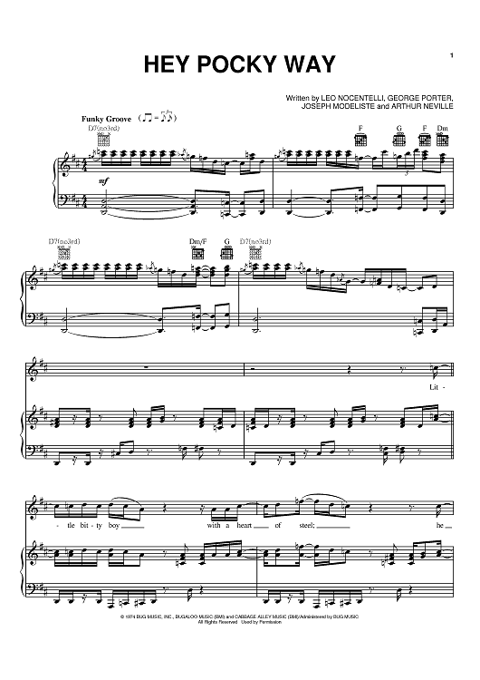 Digital Sheet Music for Hey Pocky Way by The Meters, Jr., Joseph Modeliste, Arthur Neville, George Porter scored for Piano/Vocal/Chords; id:369224