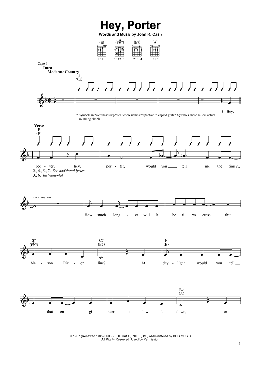 Digital Sheet Music for Hey, Porter by Johnny Cash scored for Lead Sheet with Guitar Grids; id:369377