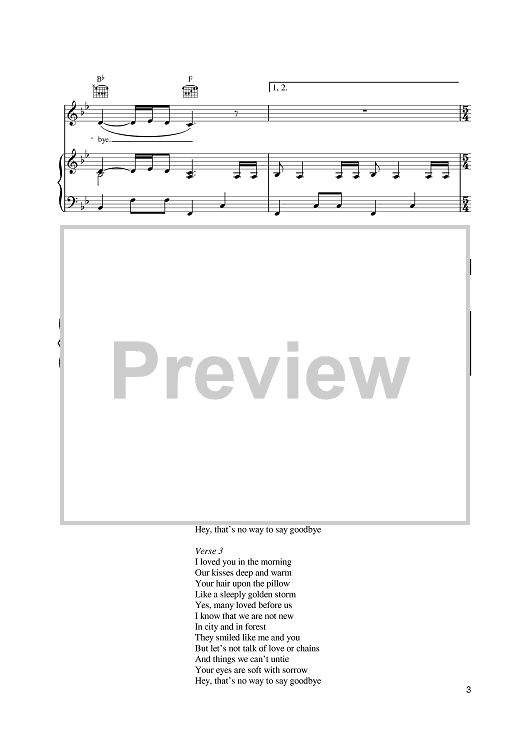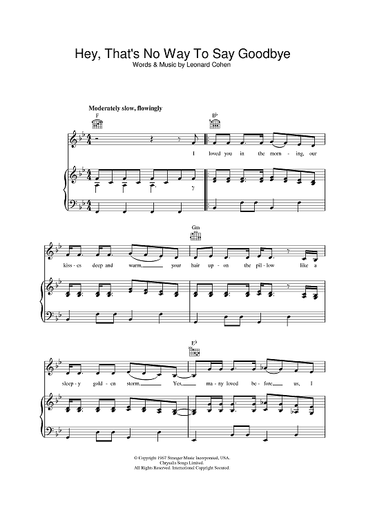 Digital Sheet Music for Hey, That's No Way To Say Goodbye by Leonard Cohen scored for Piano/Vocal/Chords; id:387855