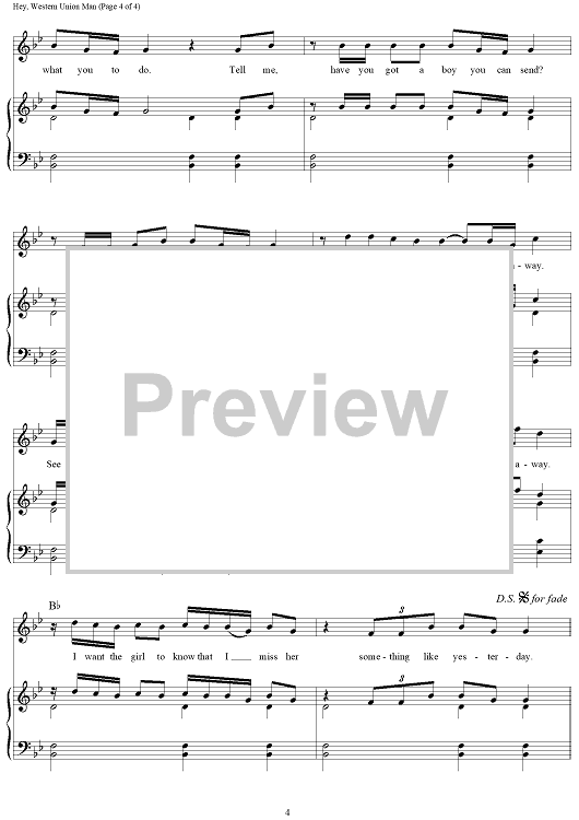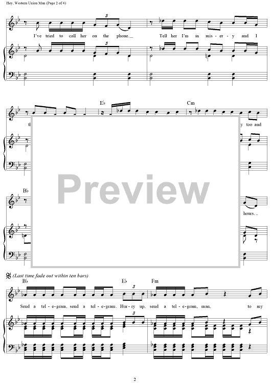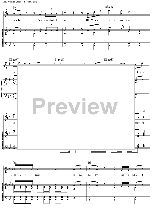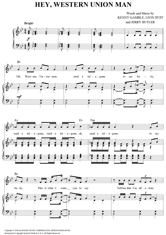 Digital Sheet Music for Hey, Western Union Man by Jerry Butler, Leon Huff, Kenneth Gamble scored for Piano/Vocal/Chords; id:119237