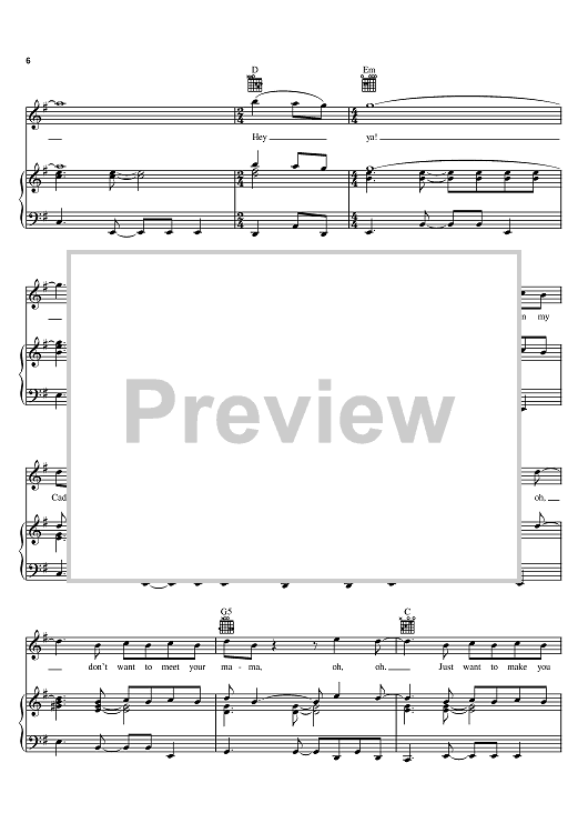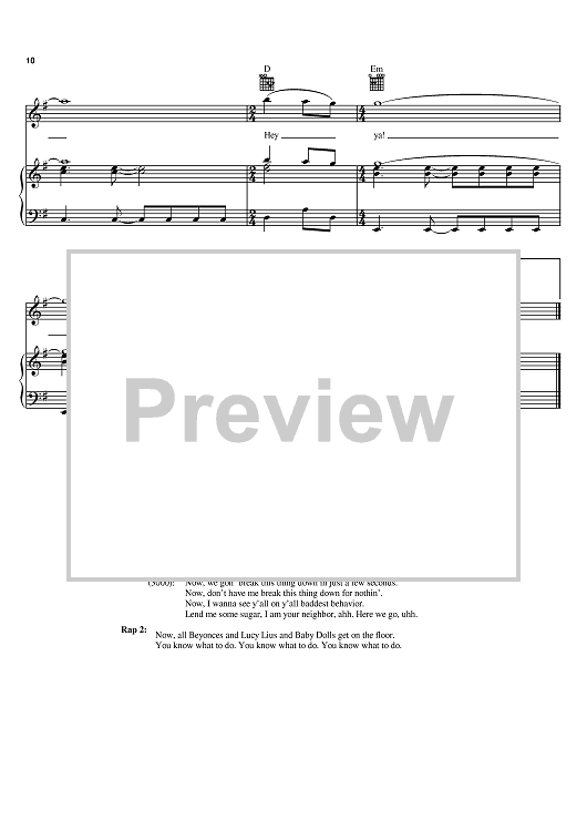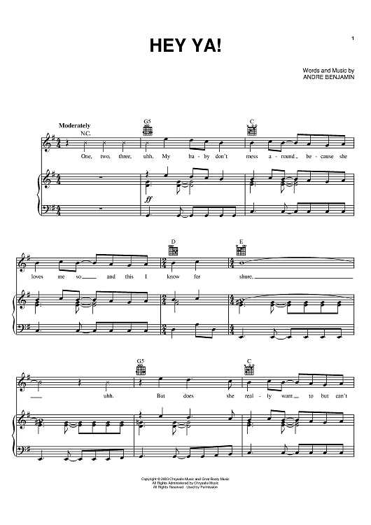 Digital Sheet Music for Hey Ya! by André 3000, OutKast scored for Piano/Vocal/Chords; id:374554