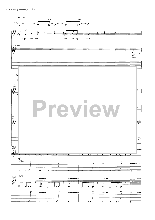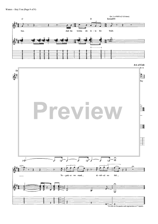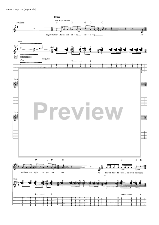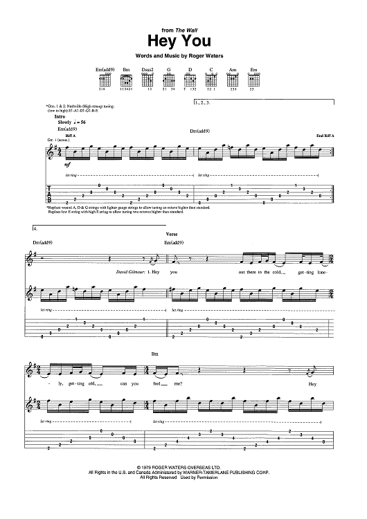 Digital Sheet Music for Hey You by Pink Floyd, Roger Waters scored for Guitar Tab/Vocal/Chords; id:444874