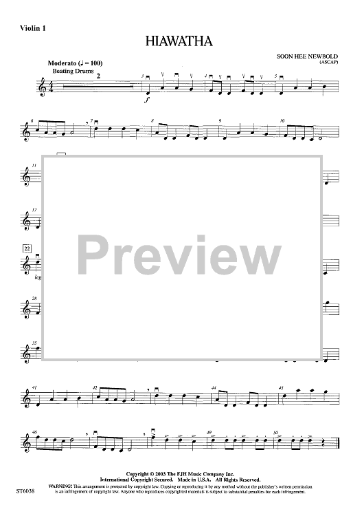 "Hiawatha - Violin 1" Sheet Music by Soon Hee Newbold