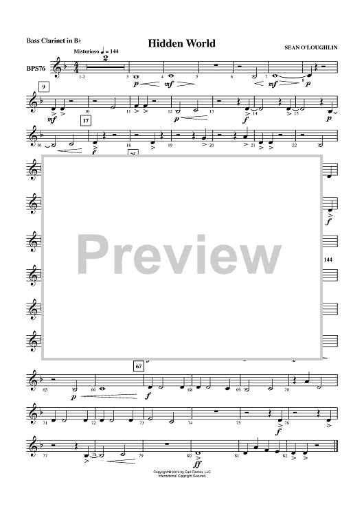 Digital Sheet Music for Hidden World - Bass Clarinet in Bb by Sean O'Loughlin scored for Concert Band; id:435387