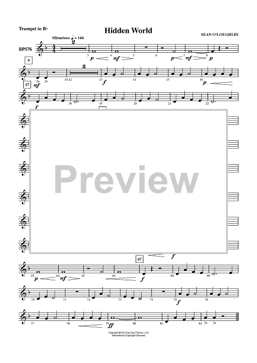 Digital Sheet Music for Hidden World - Trumpet in Bb by Sean O'Loughlin scored for Concert Band; id:435391