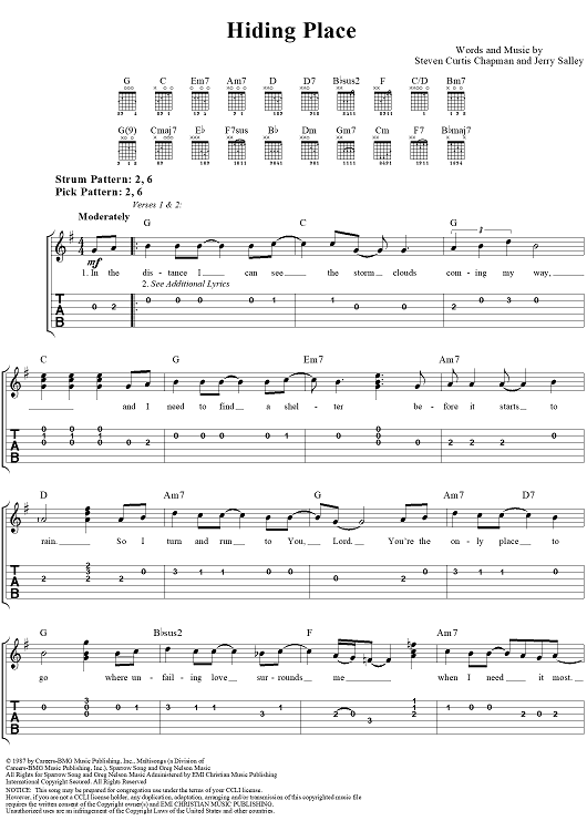 "Hiding Place" Sheet Music by Steven Curtis Chapman