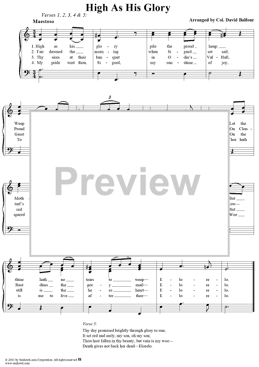 Digital Sheet Music for High As His Glory by Col. David Balfour scored for Voice/Piano; id:276395