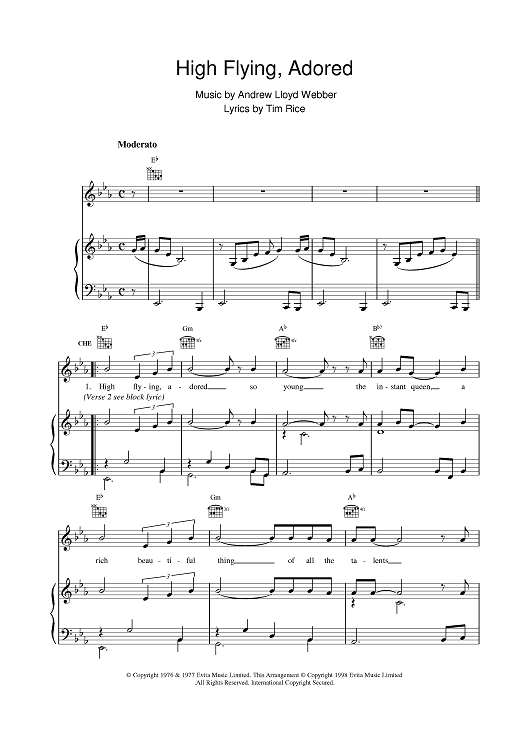 Digital Sheet Music for High Flying Adored by Andrew Lloyd Webber, Tim Rice scored for Piano/Vocal/Chords; id:375909