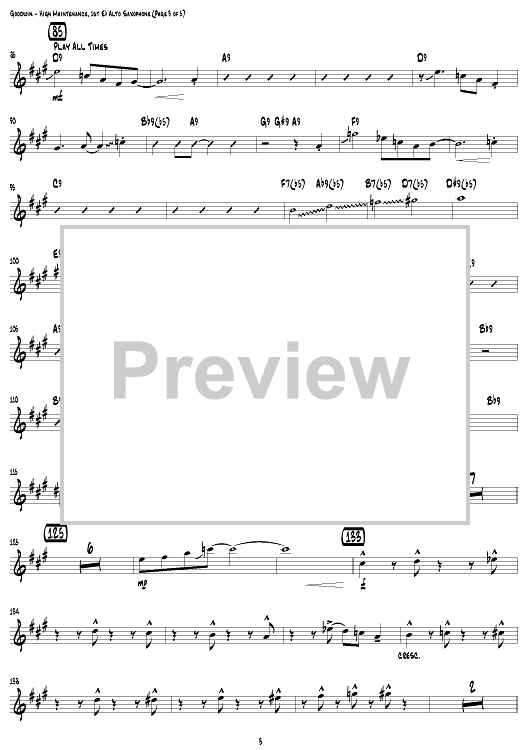 Digital Sheet Music for High Maintenance - Alto Saxophone 1 by Gordon Goodwin, Gordon Goodwin's Big Phat Band scored for Jazz Ensemble; id:308253