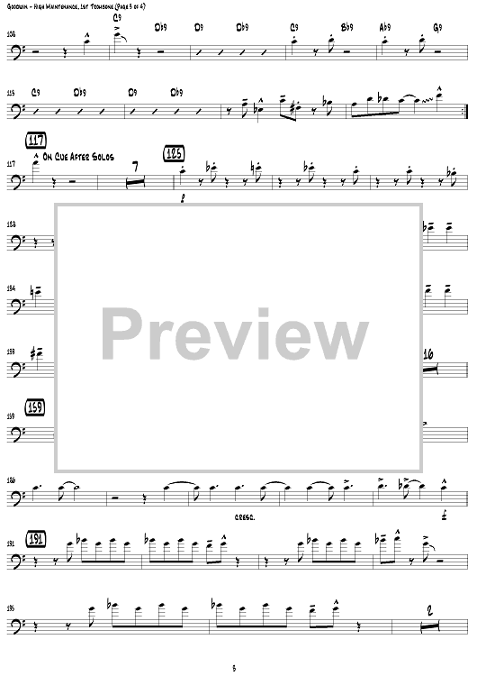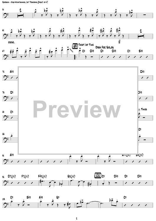 Digital Sheet Music for High Maintenance - Trombone 1 by Gordon Goodwin, Gordon Goodwin's Big Phat Band scored for Jazz Ensemble; id:308262