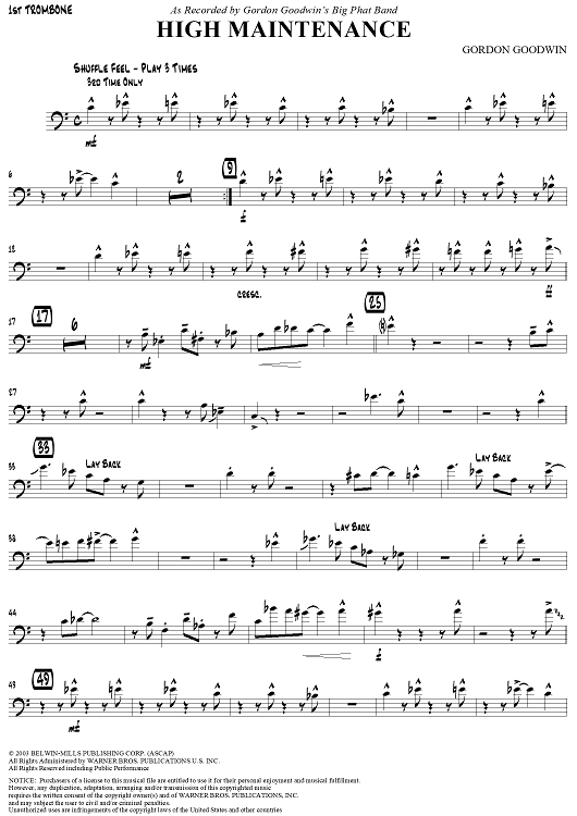 "High Maintenance - Trombone 1" Sheet Music by Gordon Goodwin's Big Phat Band