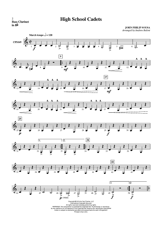 Digital Sheet Music for High School Cadets - Bass Clarinet in Bb by John Philip Sousa, Andrew Balent scored for Concert Band; id:450897