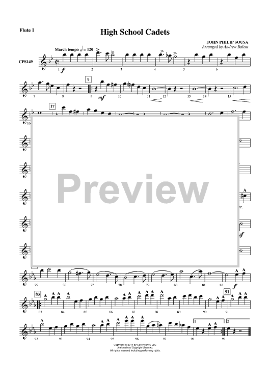 Digital Sheet Music for High School Cadets - Flute 1 by John Philip Sousa, Andrew Balent scored for Concert Band; id:450891