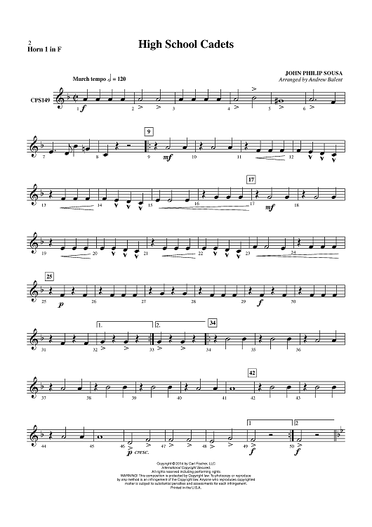 Digital Sheet Music for High School Cadets - Horn 1 in F by John Philip Sousa, Andrew Balent scored for Concert Band; id:450906