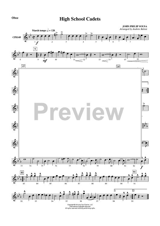 Digital Sheet Music for High School Cadets - Oboe by John Philip Sousa, Andrew Balent scored for Concert Band; id:450893