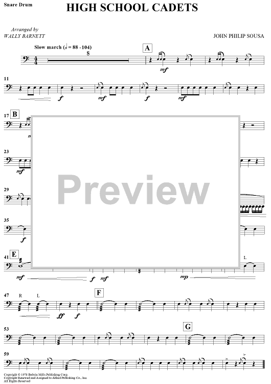 Digital Sheet Music for High School Cadets by John Philip Sousa, Wally Barnett scored for Snare Drum/Piano; id:439479