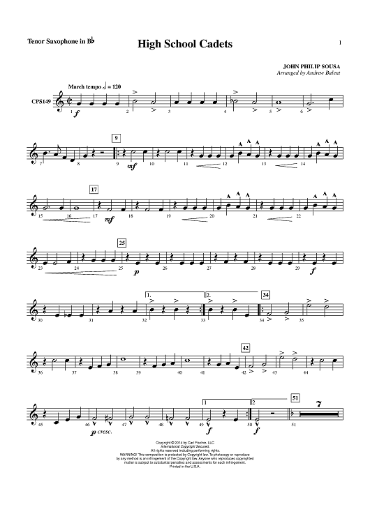 Digital Sheet Music for High School Cadets - Tenor Sax by John Philip Sousa, Andrew Balent scored for Concert Band; id:450901