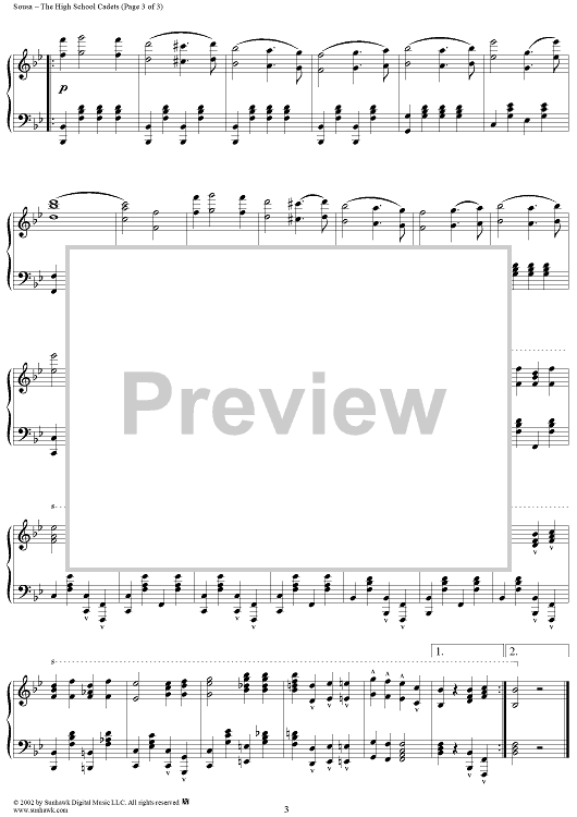 Digital Sheet Music for High School Cadets, The, March by John Philip Sousa scored for Piano Solo; id:259438