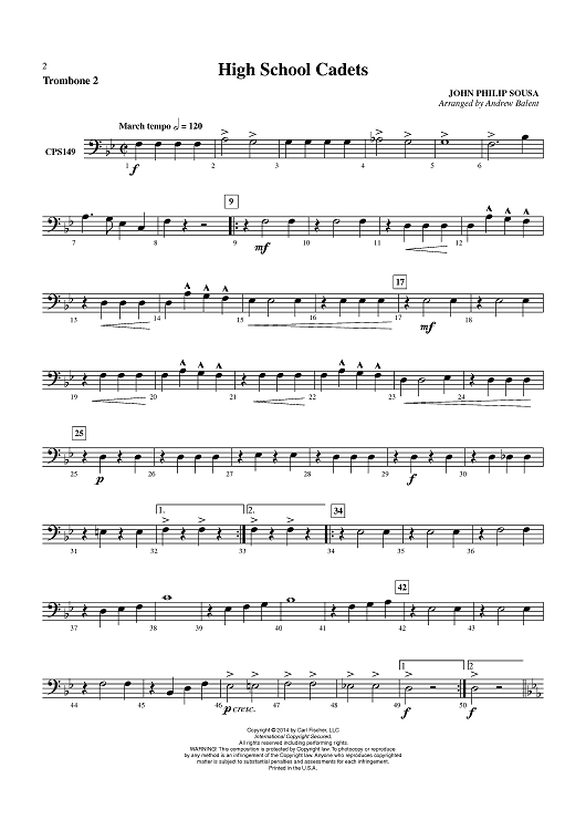 Digital Sheet Music for High School Cadets - Trombone 2 by John Philip Sousa, Andrew Balent scored for Concert Band; id:450909
