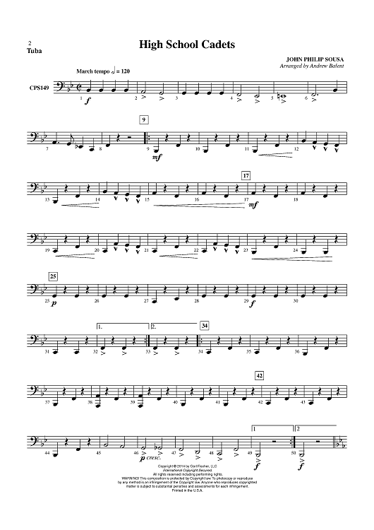 "High School Cadets - Tuba" Sheet Music by John Philip Sousa