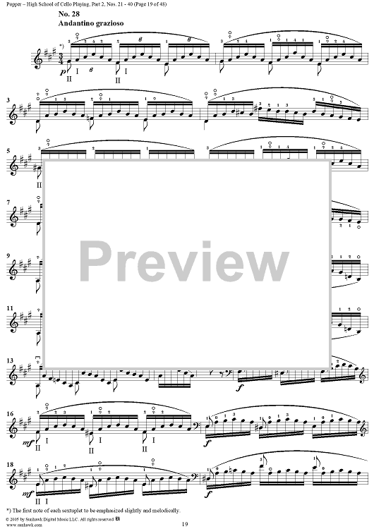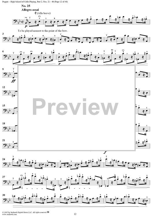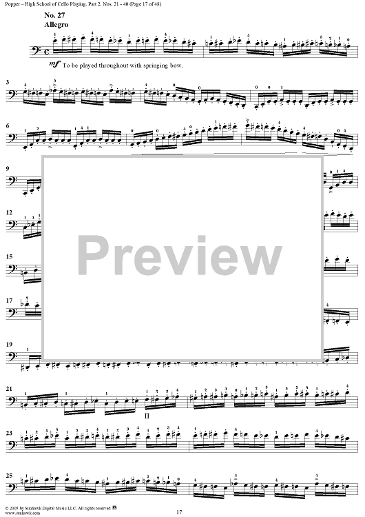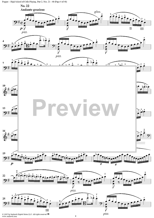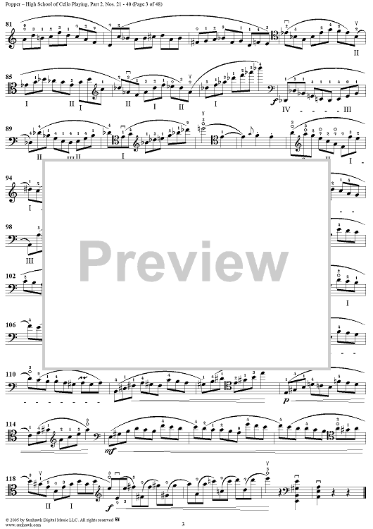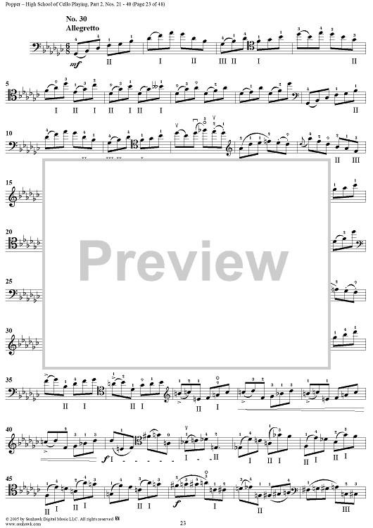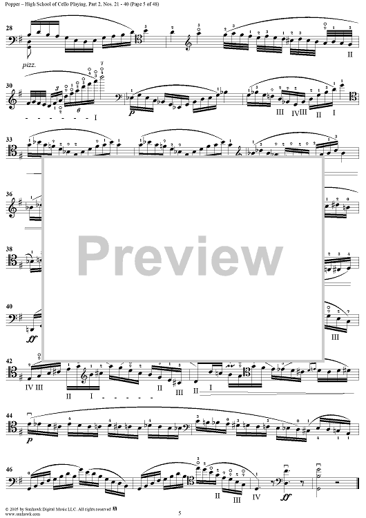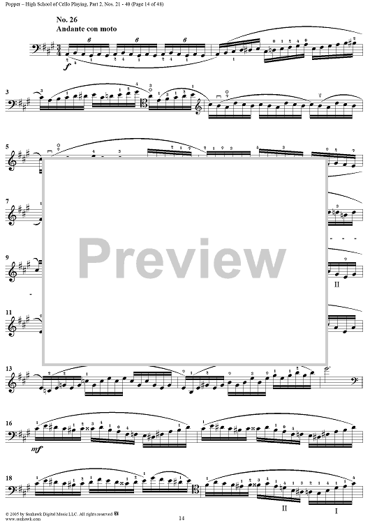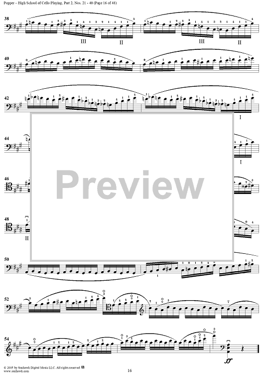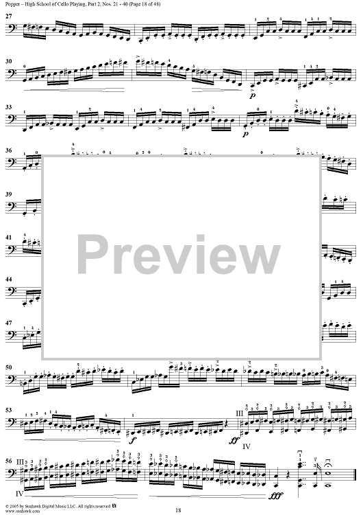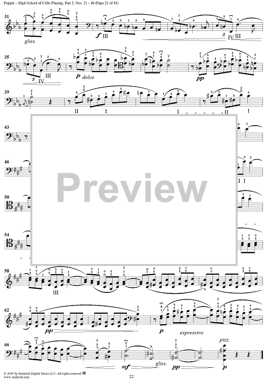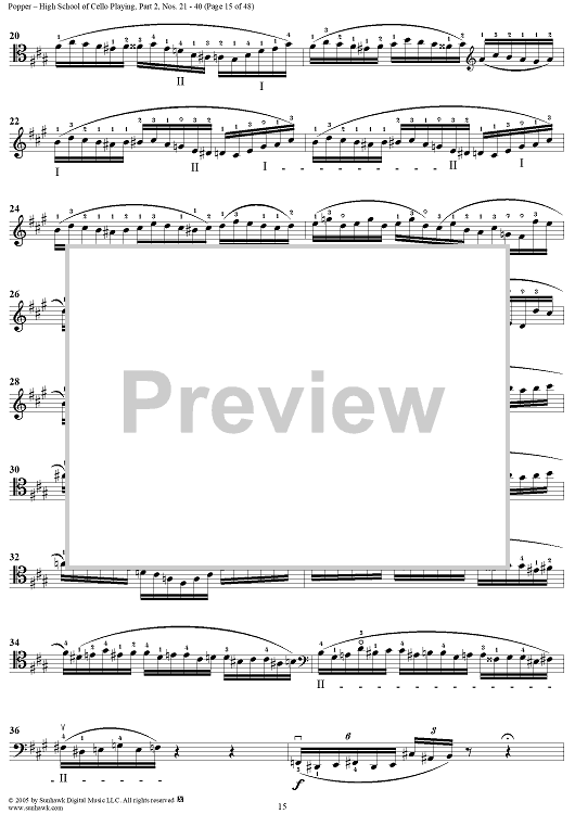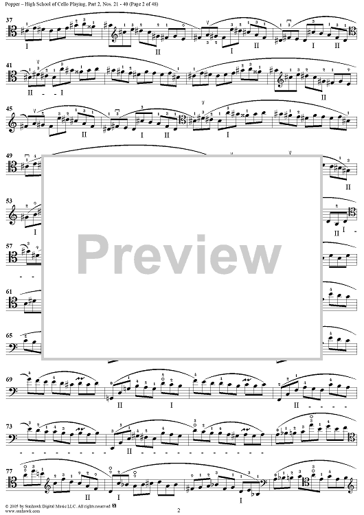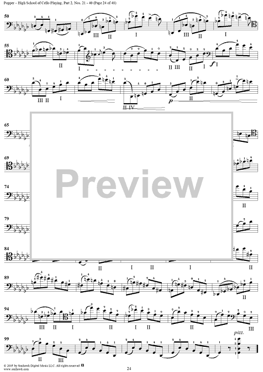 Digital Sheet Music for High School of Cello Playing, Op. 73: Part 2 (Nos. 21-40) by David Popper scored for Cello Studies; id:312200