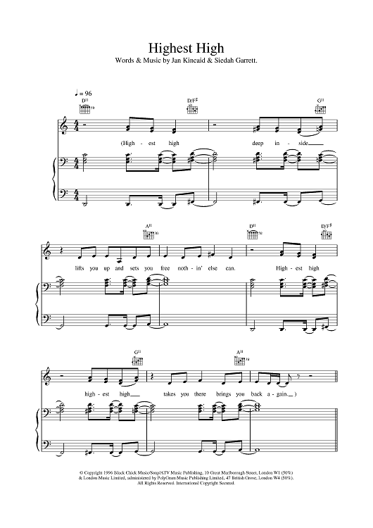 Digital Sheet Music for Highest High by Brand New Heavies scored for Piano/Vocal/Chords; id:376496
