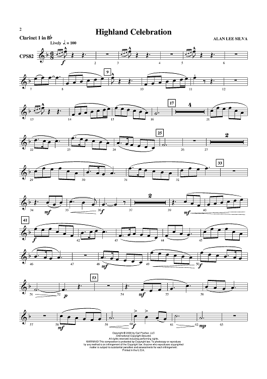 Digital Sheet Music for Highland Celebration - Clarinet 1 in B-flat by Alan Lee Silva scored for Concert Band; id:408990
