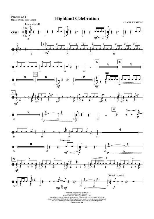 "Highland Celebration - Percussion 1" Sheet Music by Alan Lee Silva