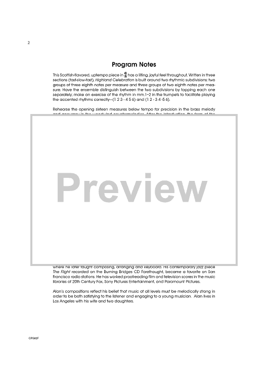 "Highland Celebration - Score" Sheet Music by Alan Lee Silva