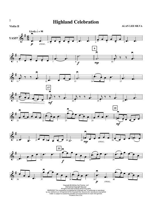 "Highland Celebration - Violin 2" Sheet Music by Alan Lee Silva