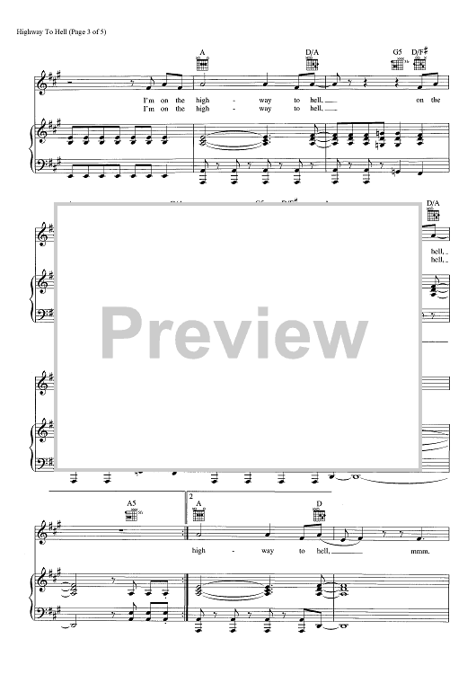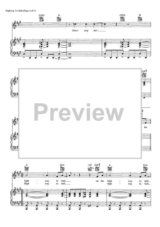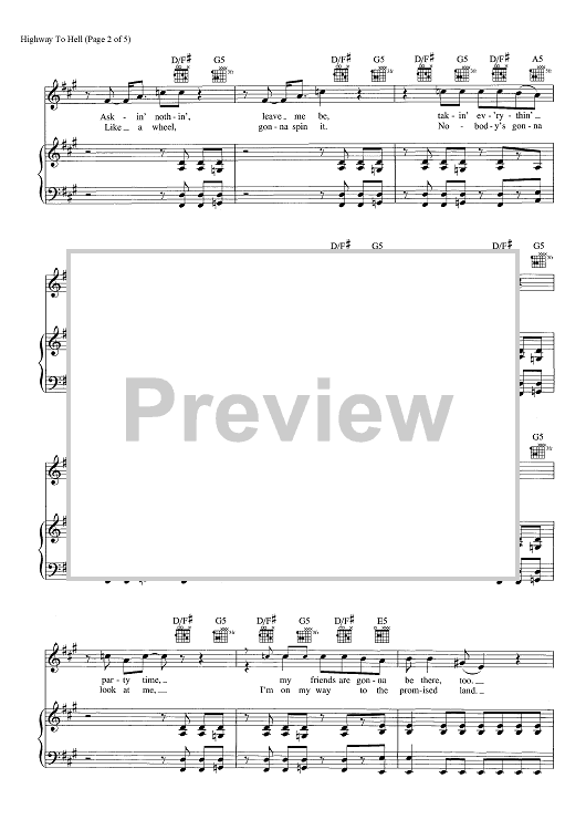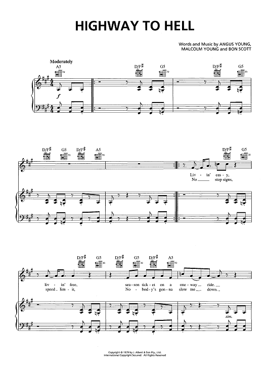 Digital Sheet Music for Highway To Hell by AC/DC, Angus Young, Malcolm Young, Bon Scott scored for Piano/Vocal/Chords; id:465983