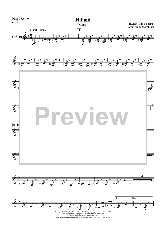 "Hiland (March) - Bass Clarinet in Bb" Sheet Music by Harold Bennett
