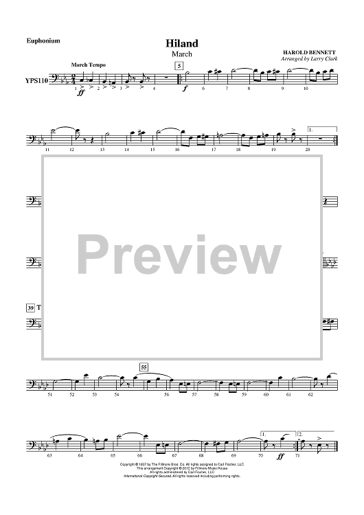 "Hiland (March) - Euphonium BC" Sheet Music by Harold Bennett